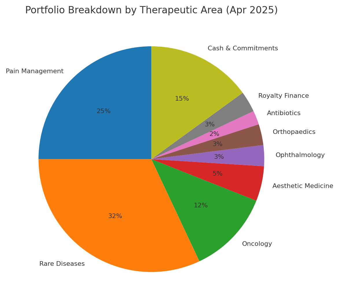 BPCR’s portfolio spans multiple therapeutic areas, reducing exposure to any single market. As of April 2025, the fund is diversified across pain management (25% of assets via Collegium’s pain drugs), rare diseases (32% via orphan disease therapies like Insmed’s and BioCryst’s), oncology (12% via cancer-focused loans), and other niches from ophthalmology to orthopedics. This breadth helps spread risk across healthcare subsectors.