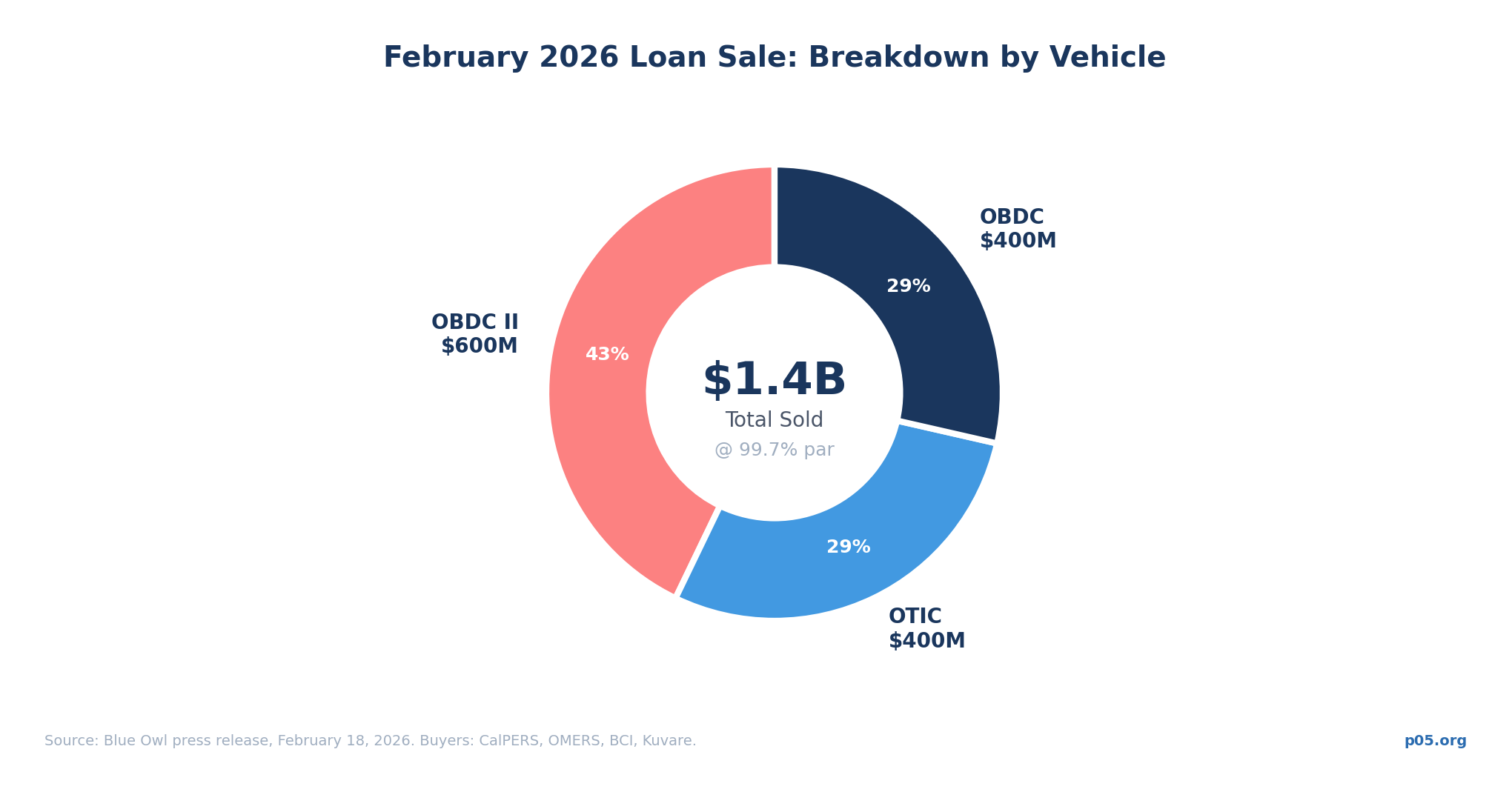 To fund an accelerated return of capital, Blue Owl executed a $1.4 billion secondary loan sale across three vehicles:
