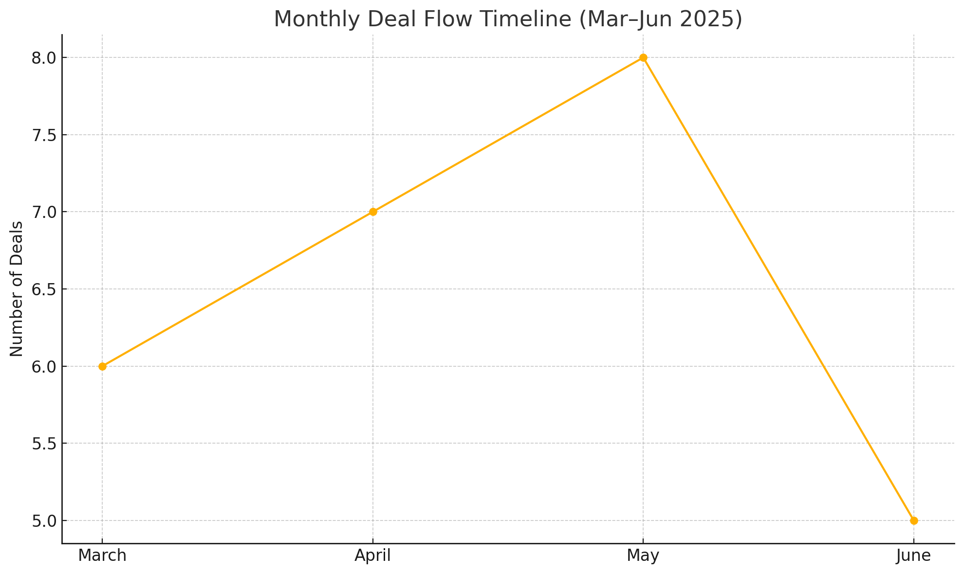 The timeline below plots the announcement dates of several major Q2 2025 deals, showing a cluster of activity in mid/late March, a brief lull in April, and a resurgence in May–June as big announcements landed: