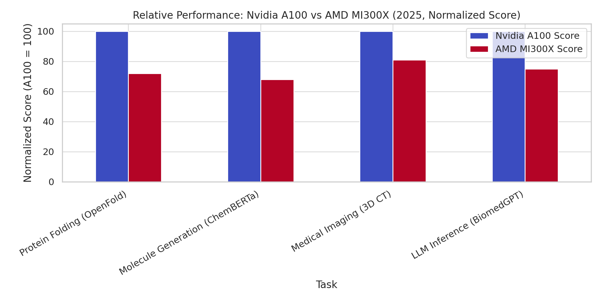 It’s worth noting that AMD often competes by offering more memory or FLOPs per dollar, which can be very relevant in biotech: e.g., training a next-gen AlphaFold with longer protein sequences might be feasible on a single MI300X (with 192GB) whereas it would spill out of an 80GB card – meaning you’d need multiple Nvidia GPUs, negating cost advantages. Similarly, more memory can benefit generative models that need to hold large chemical libraries or knowledge graphs in memory.