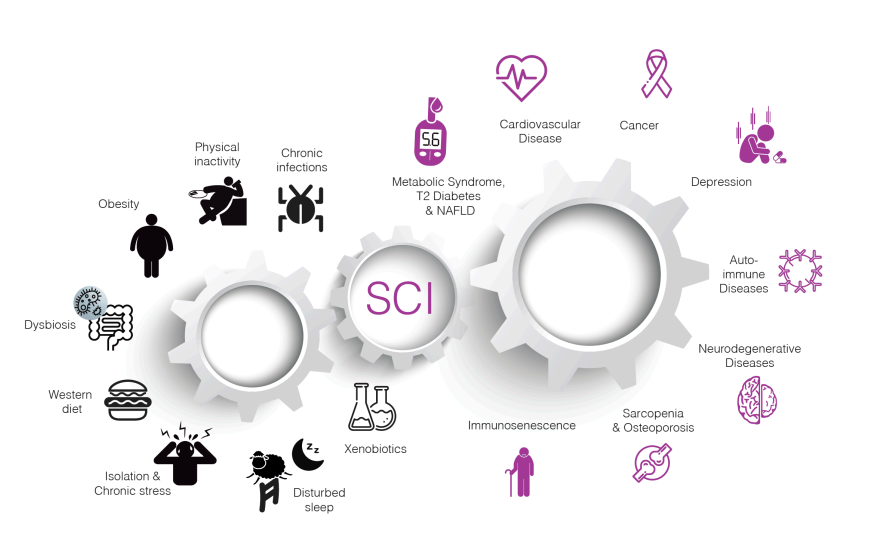 Chronic low-grade inflammation links diverse risk factors to major chronic diseases. Many triggers – such as obesity, physical inactivity, poor diet, smoking, chronic stress, infections, and environmental pollutants – can induce persistent systemic inflammation. This smoldering inflammation in turn contributes to the pathogenesis of cardiometabolic diseases (like metabolic syndrome, type 2 diabetes, fatty liver disease, atherosclerosis), malignancies (cancer), neurodegenerative disorders (Alzheimer’s and other dementias), and autoimmune or degenerative conditions (discovery.ucl.ac.ukdiscovery.ucl.ac.uk).
