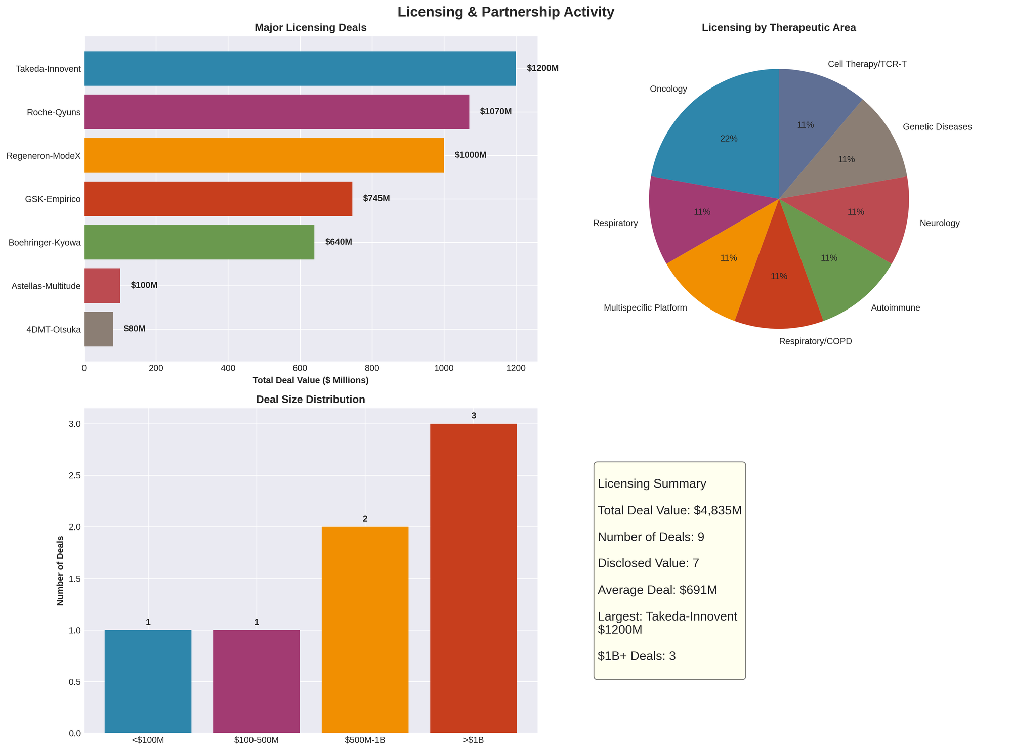 - Licensing/Partnerships: $5.6+ billion (14 transactions)